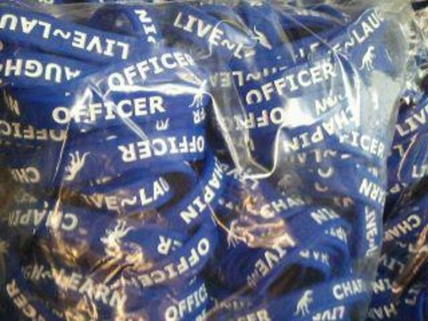 Earlier this week, the fundraisers received a shipment of bracelets inscribed with “Live~Laugh~Learn Officer Chapin" with an image of his signature Raptor, which it is distributing for donations of $5. It also is offereing a private labeled Wine called "Valor" and labeled water, with proceeds going to the Officer Stan Chapin Memorial Fund.