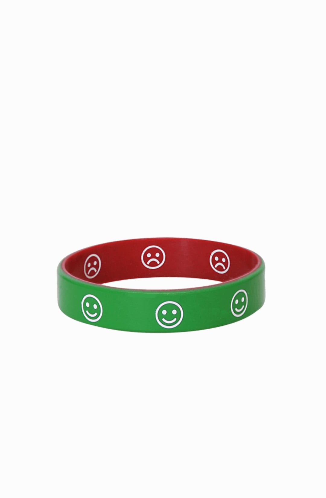 Emotion wristbands are a really simple way for children to express their feelings. At Handband, our emotion wristbands are made of silicone and have one side with a red background and frowning face and the other side coloured green with a smiley face.